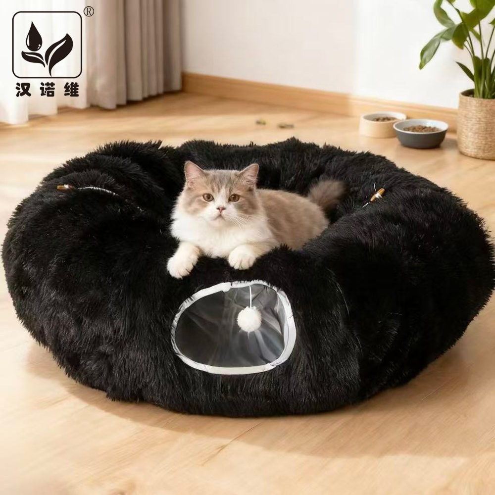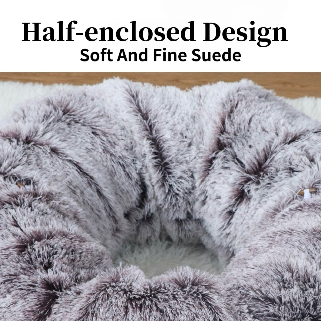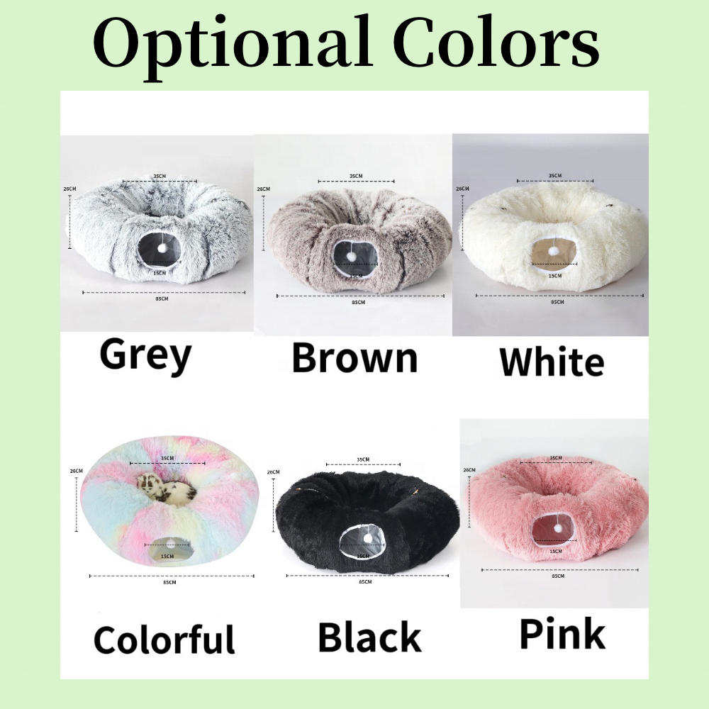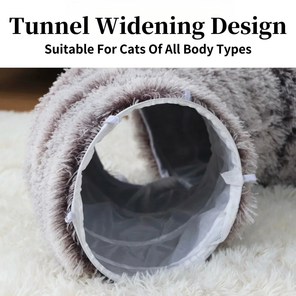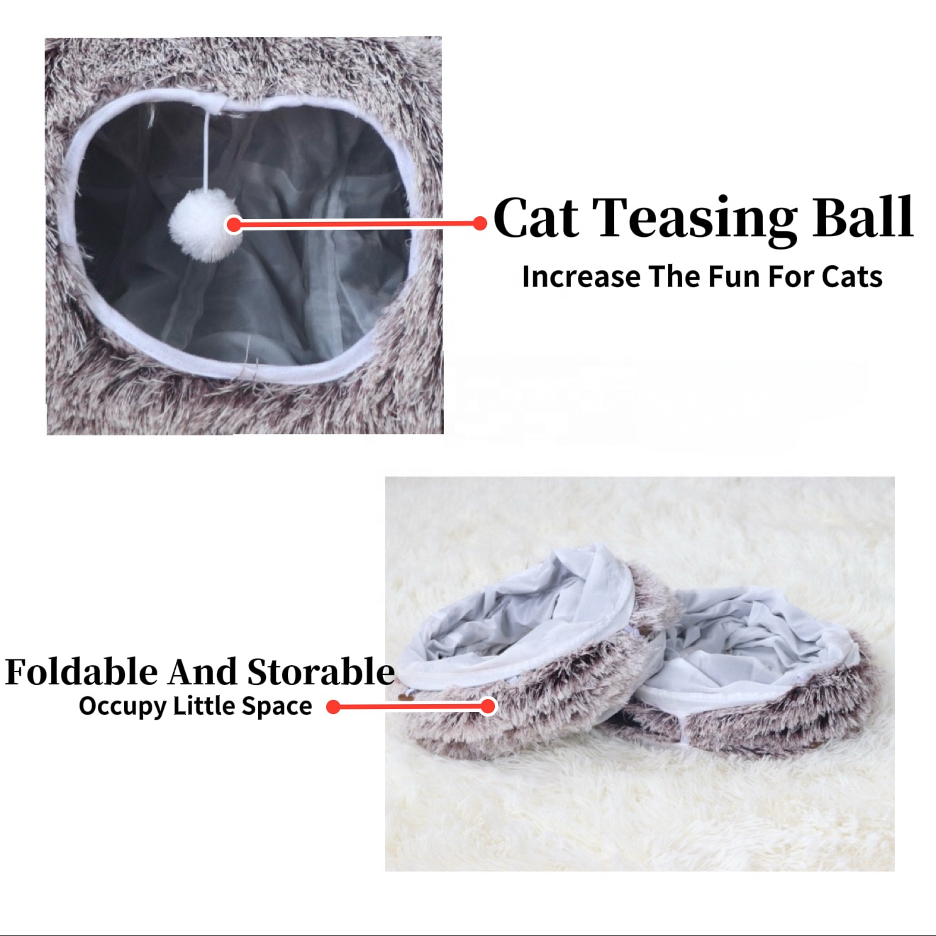 2-in-1 Collapsible Plush Cat Tunnel Soft Bed with Cushion for Indoor Cats Foldable Nest